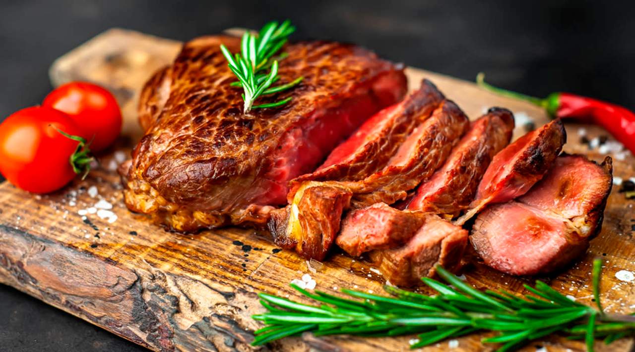 Medalhões de Lombo de Boi grelhados em azeite acompanhados com batata à murro e legumes