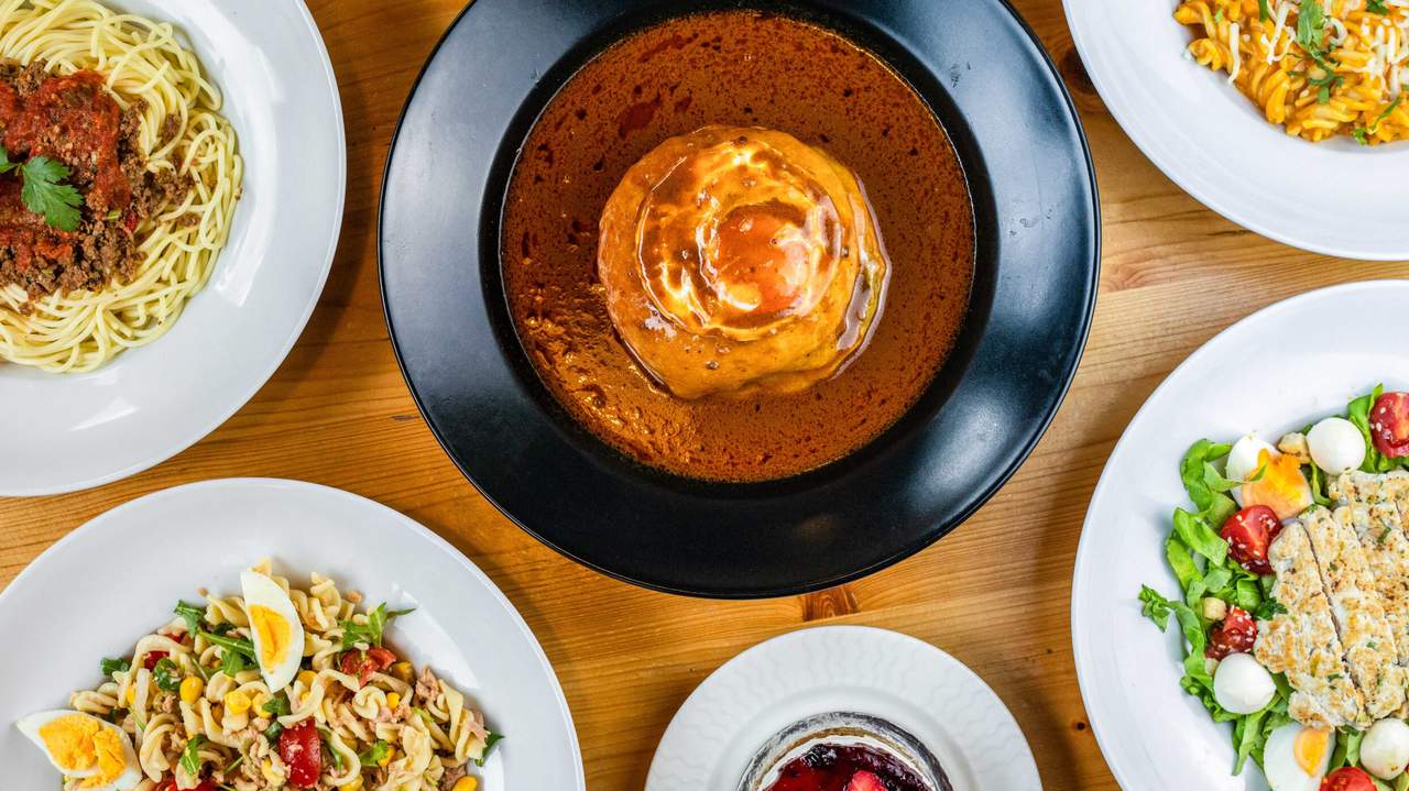 Molho de soja, 120gr de hambúrguer vegetariano, molho de espinafres, cenoura, pepino, queijo brie, tomate e beringela na chapa