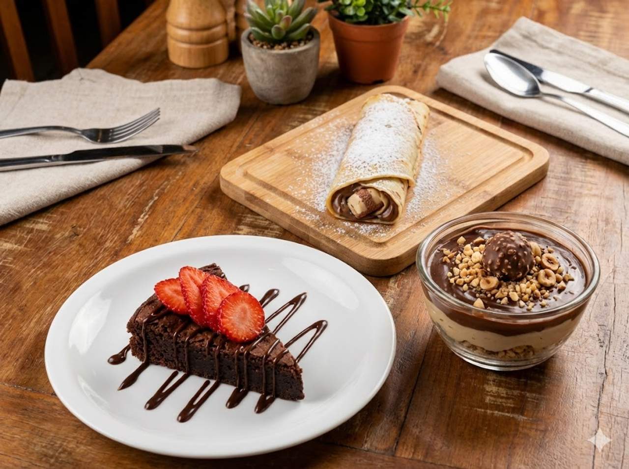Delicioso recheio de Nido cremoso, pedaços de Brownie, morangos e mousse de brigadeiro