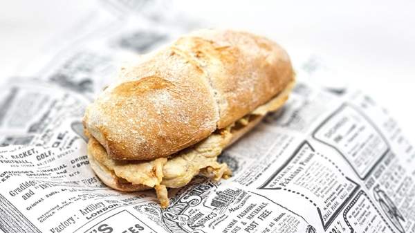Bolo caco, frango, queijo cheddar, alface e cebola