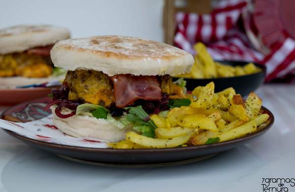 Carne de novilho, bacon, ovo, queijo cheddar e molho cocktail.