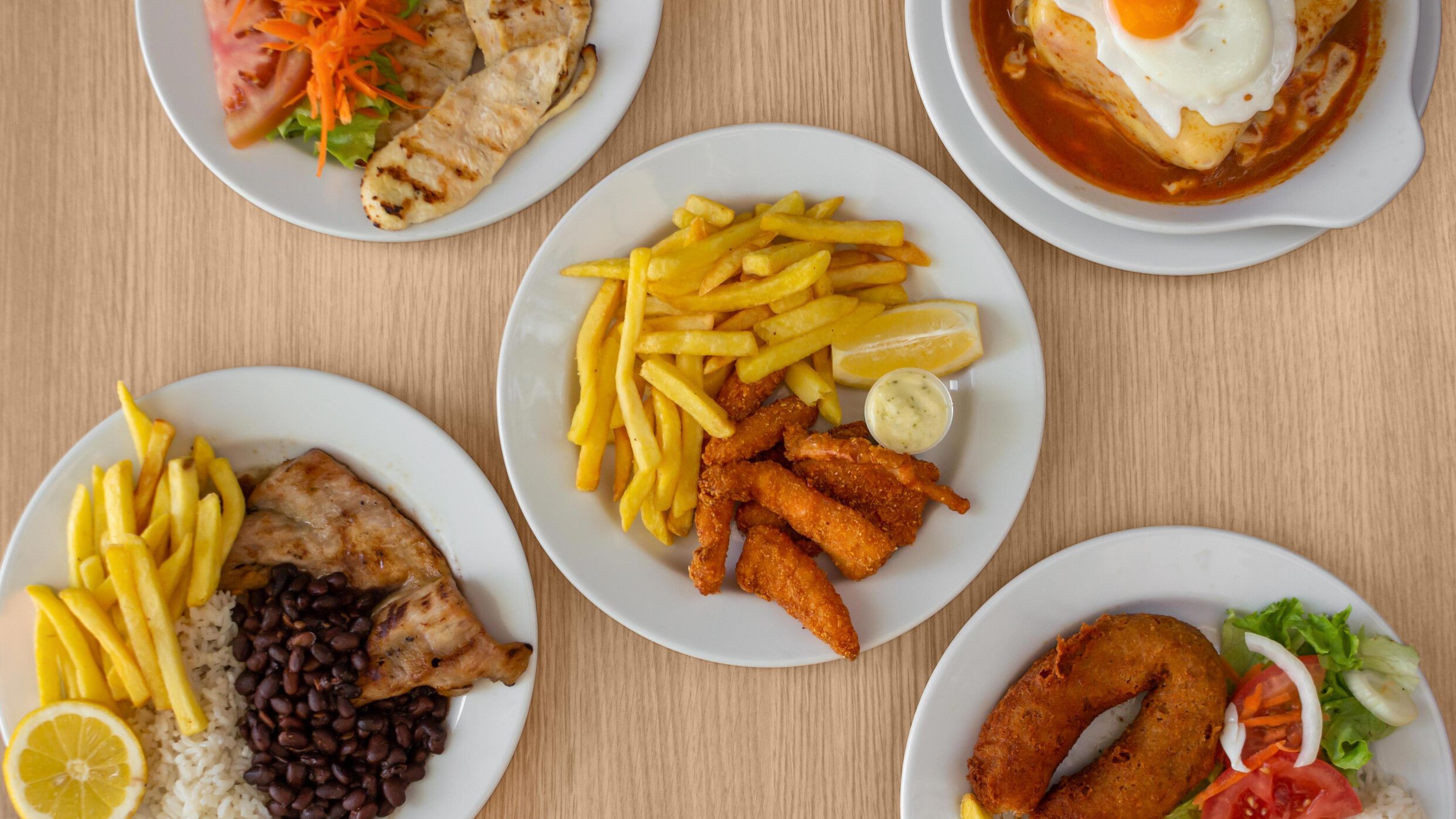 Coxa de frango, salsicha toscana, entrecosto e picanha. Inclui até três acompanhamentos e bebida.