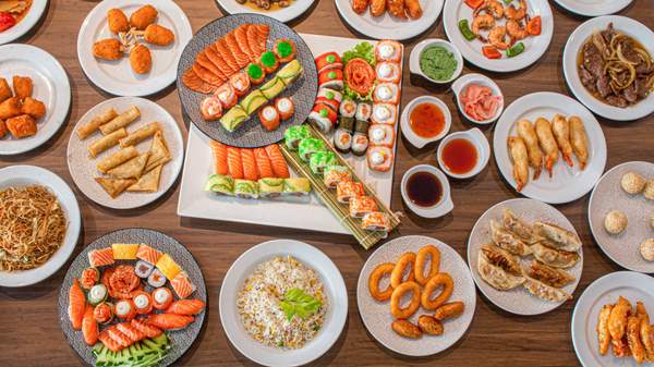 35 peças (8 uramakis mix, 8 hots makis, 6 nigiris de salmão e camarão, 6 nigiris joy mix e 7 futo maki)