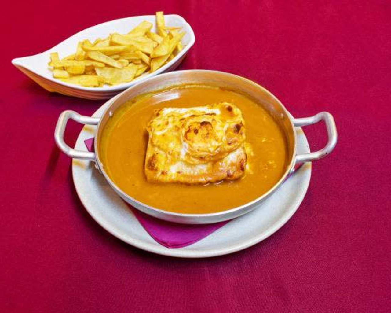 Fiambre, Bacon, cebola, ovo a meio e molho de alho.