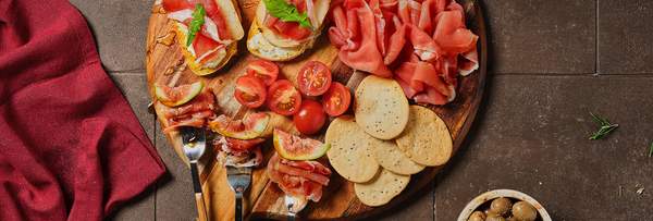 Base margherita, fiambre italiano, cogumelos frescos, pancetta, azeitonas.