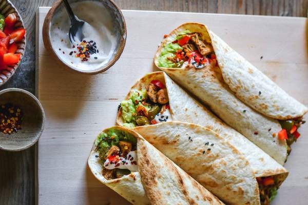 combination of chicken breast, potato, cheese,bacon, , fries, salsas, mashed avocado, pickled jalapeños, pico de gallo, wrapped in a tortilla