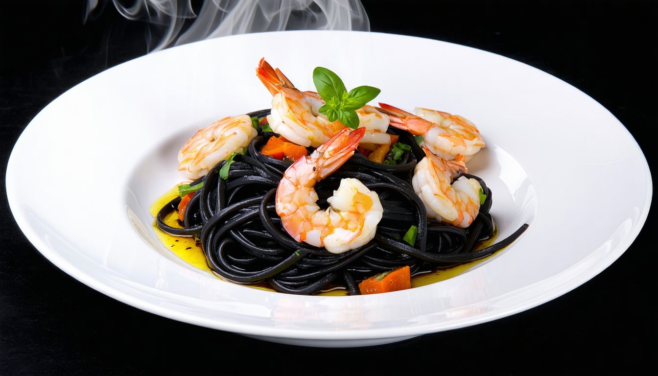 Linguini Negro de Camarão e Frutos do Mar