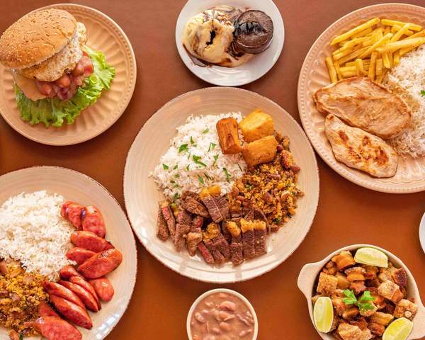 Escolha 2 carnes, suas fritas e seu feijão. Servido com: arroz vinagrete.
