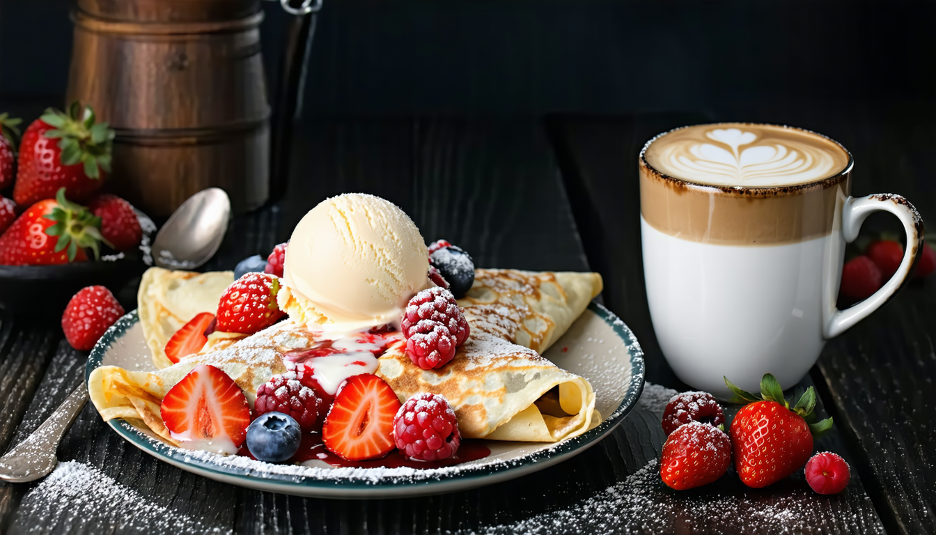 Escolha um topping. Chantili, morangos, kiwi, banana, ananás e pêssego.