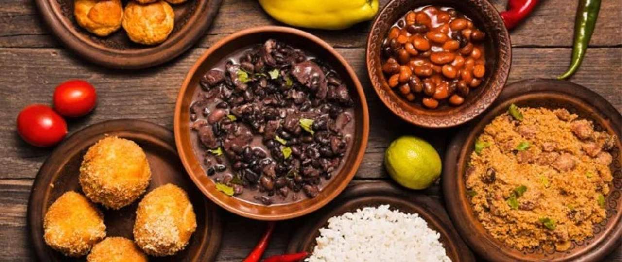 Acompanha com arroz, farofa, batata frita, salada e feijão preto.