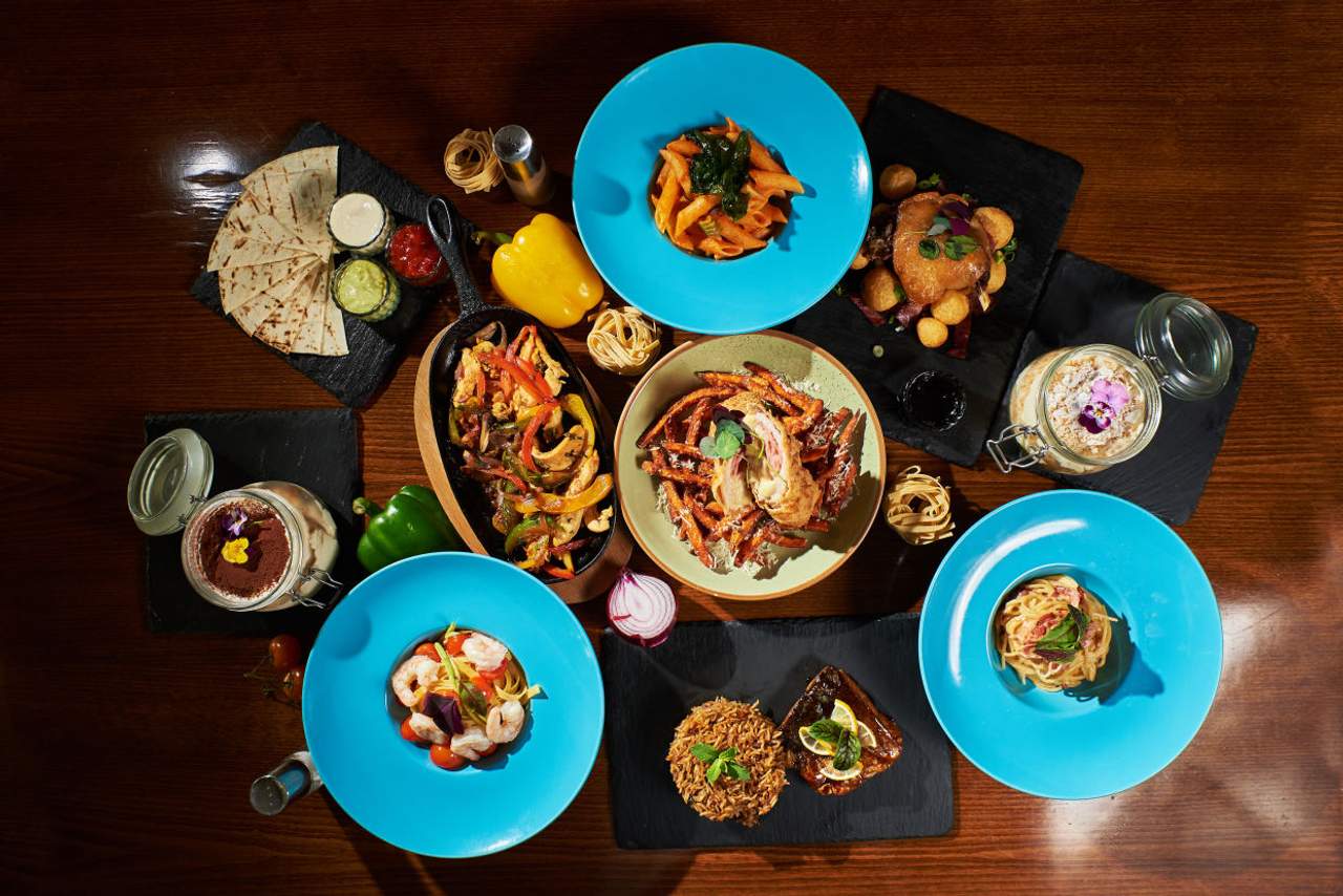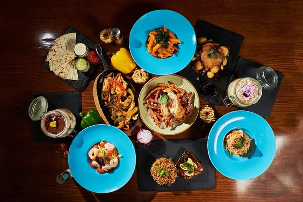 Mix salată 80g, creveți* aromatizați în vin 110g, fugi de chilli, ulei de măsline extravirgin, brânză feta 40g, roșii cherry 60g, nucă prăjită 20g, ciabatta prăjită cu usturoi 50g