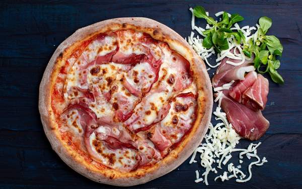 Blat 280g, pizza topping 140g, sos de roșii 90g, prosciutto crudo 86g Alergeni: gluten, ouă, lactoză, ( Produs finit ± 580 g )
