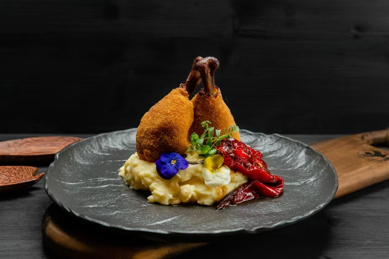 Pulpe de rață la cuptor servite cu varză roșie călită, piure de cartofi și sos Porto - 450g