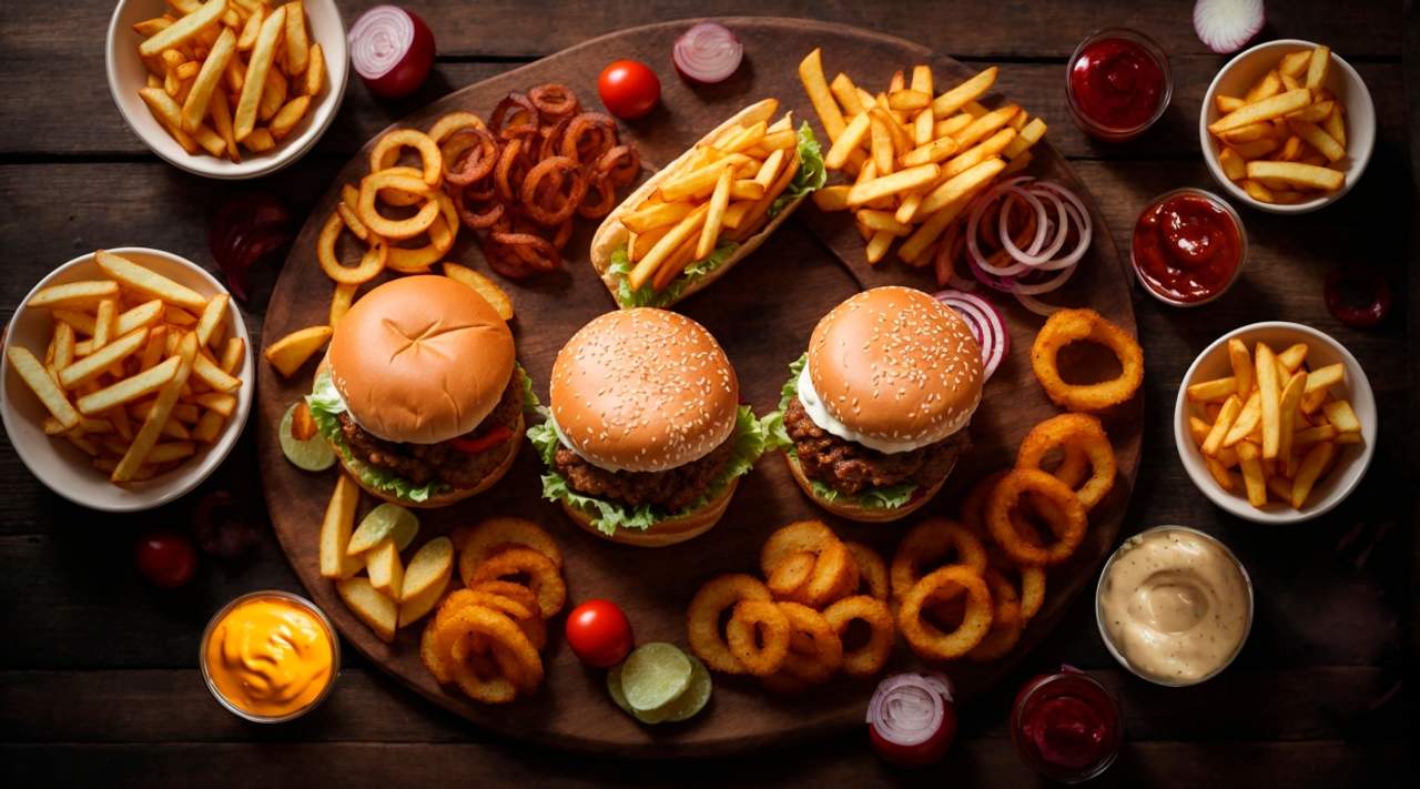 Chiflă proaspătă , carne de vită,roșii, ceapă, sos cedar , salată proaspătă, castraveți murați, cartofi , prăjiți, inele ceapă (Greutate estimată 1,4 kg)
