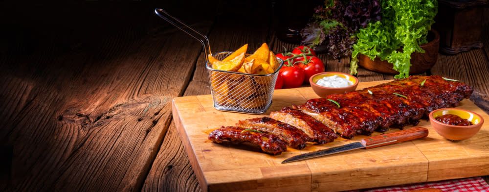 Pâinea casei, hamburger porc sau vită, bacon, branza cheddar, cartofi prăjiţi, varză, castraveţi murați, ceapă caramelizată, sos, salată verde - 550g