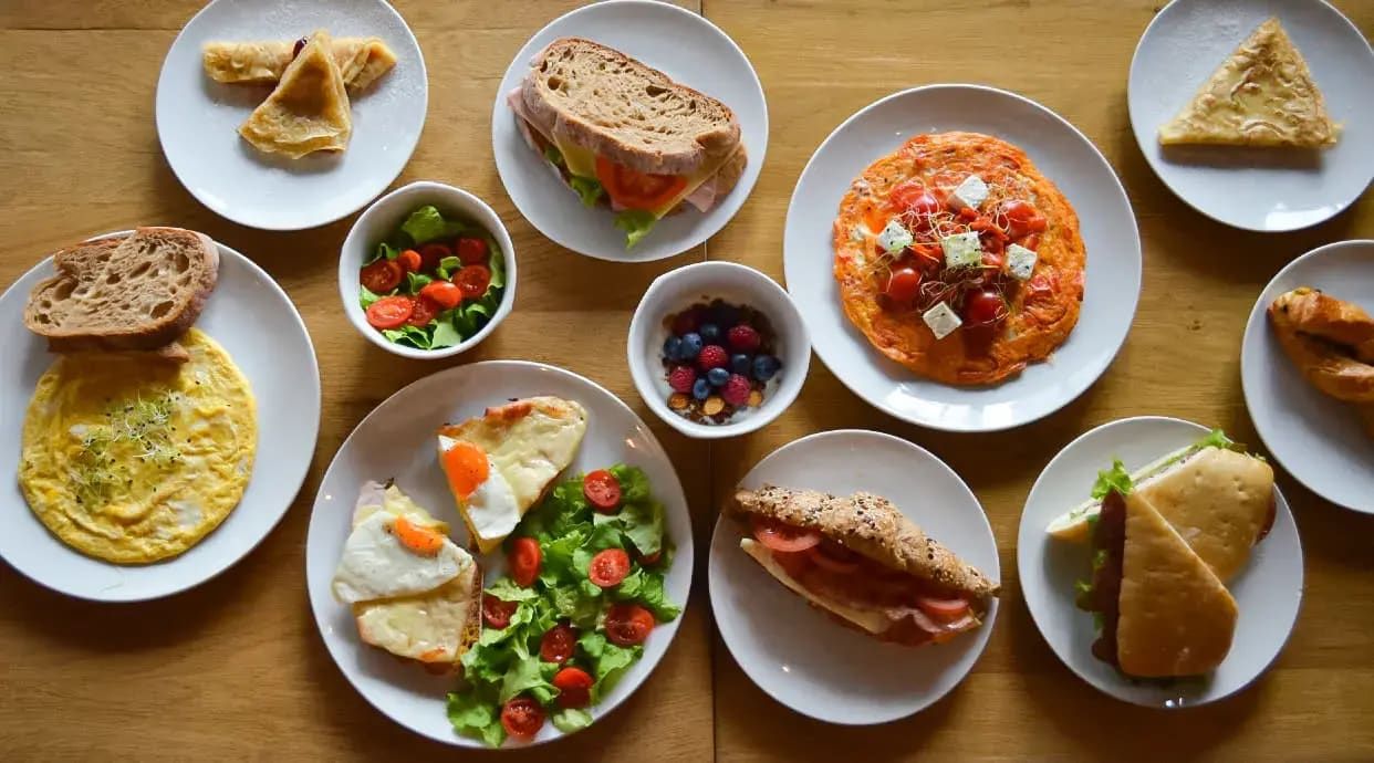 2 Oua, salata Lollo, rosii, paine Ana