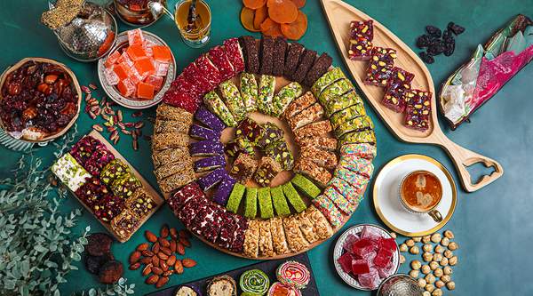 Rahat turcesc cu alune de padure, rodie si caise (de post/vegan)