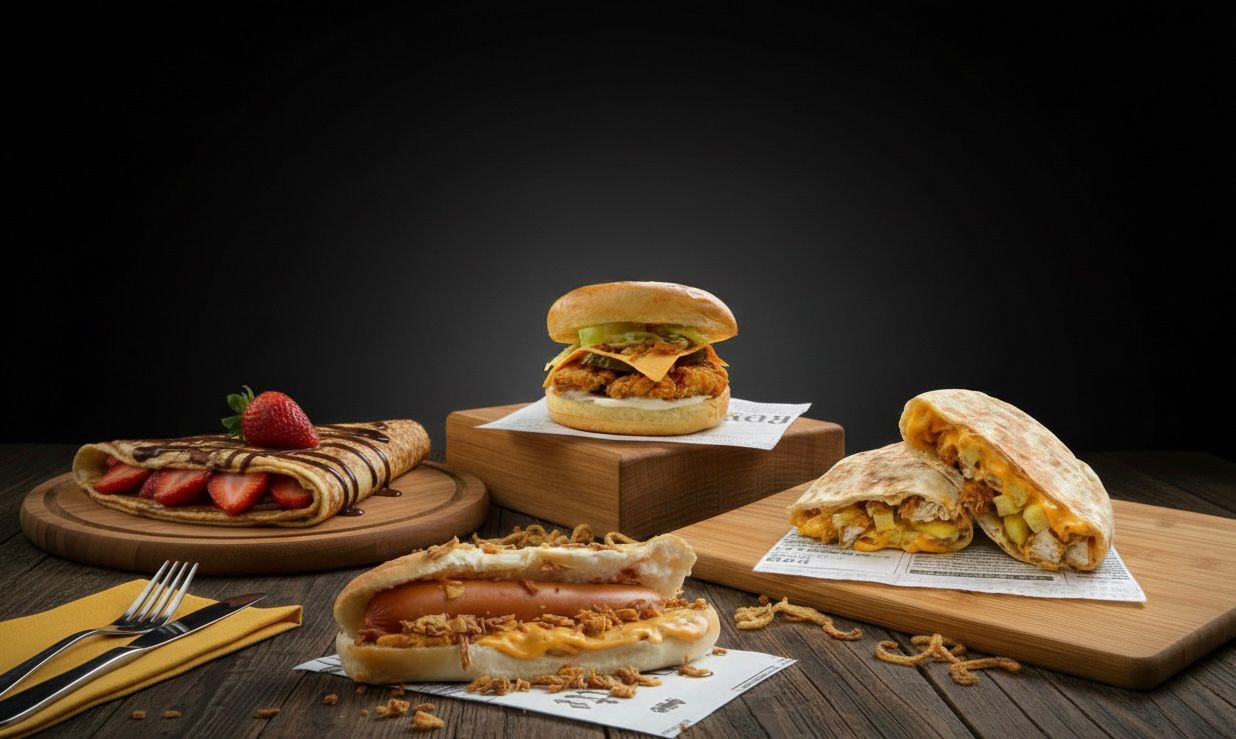 Clătită cu omletă, șuncă/bacon și cașcaval