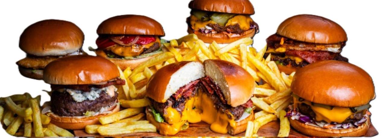 550g Chiflă artizanală 85g, carne de vită 100% naturală 150g, salată coleslaw 60g, brânză cheddar 20g, castraveți murați 20g, sos burger 50g, sos la alegere 60g, garnitură la alegere 150g