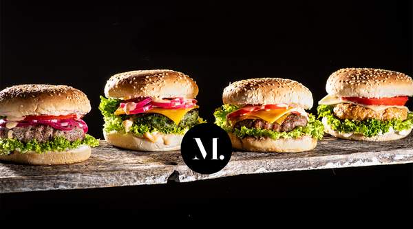 carne de vită Black Angus, apă, sare, stabilizator, condimente, corectori de aciditate, antioxidanți, ascorbat de sodiu, suc concentrat de sfeclă. Gramaj: 80g/buc. brut (crud), aprox. 60g net.
