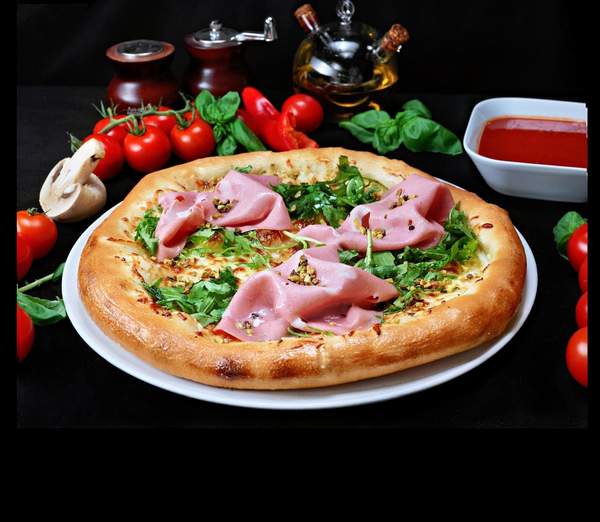 Aluat, sos de roșii, pizza topping, salam, Prosciutto cotto, ciuperci fresh, masline, ardei kapia fresh - 500g