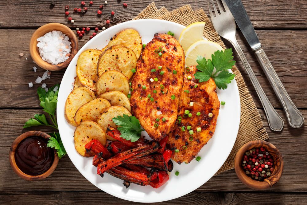 Pulpa pui, ceapa rosie, salata verde, boia de ardei - 250g