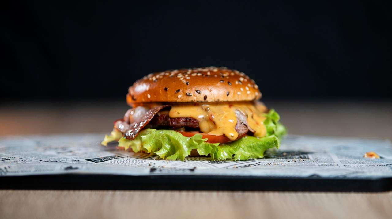 Chifla, sos buzz vita, sosul casei, salata verde normala, rosie, castravete, carne de vita, Cheddar, bacon, ceapa caramelizata - 567g