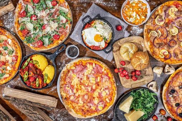 Sos pizza, mozzarella, sunca, ciuperci, salam, gorgonzola, ardei , masline - 1.42kg
