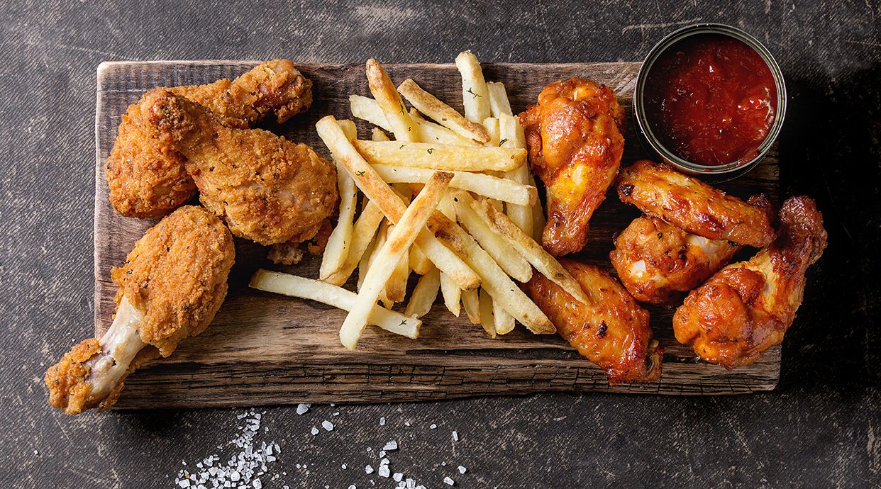 Include cartofi prajiti 150 g, Piept de pui, pesmet, ou, făină de grâu - 150g, sos sweet chilly 30 g