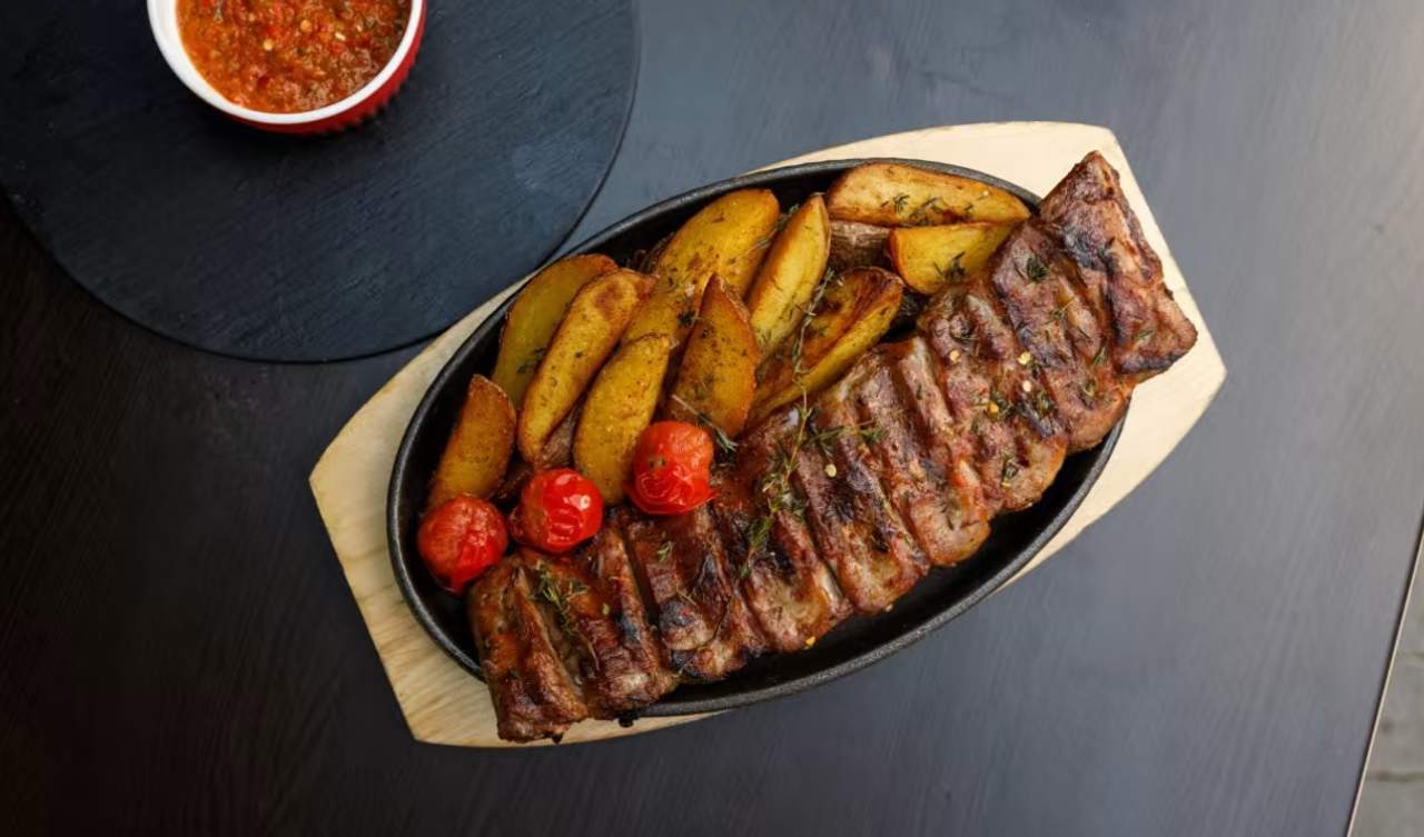 mititei, carnati picanti, fleica porc, ceafa porc- toate la gratar, cartofi pai, 2 sosuri - 1500g