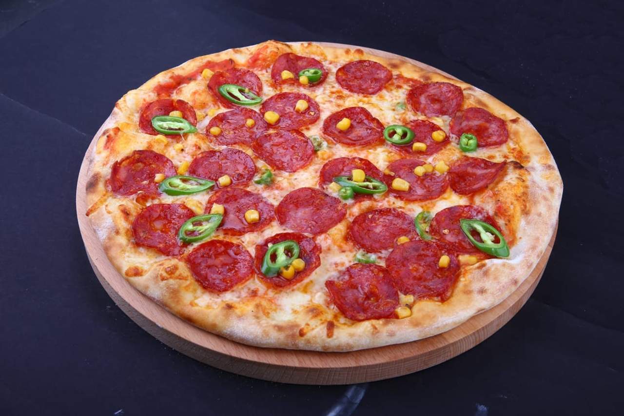 Sos de roșii, mozzarella, saleami picant, porumb, ardei iute - 1.04kg
