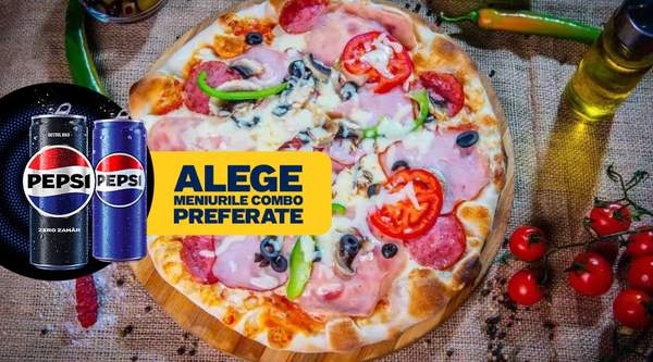 Sos pizza, mozzarella, sunca presata, salam, muschiulet, ciuperci, ardei gras verde, masline, ceapa - 650g