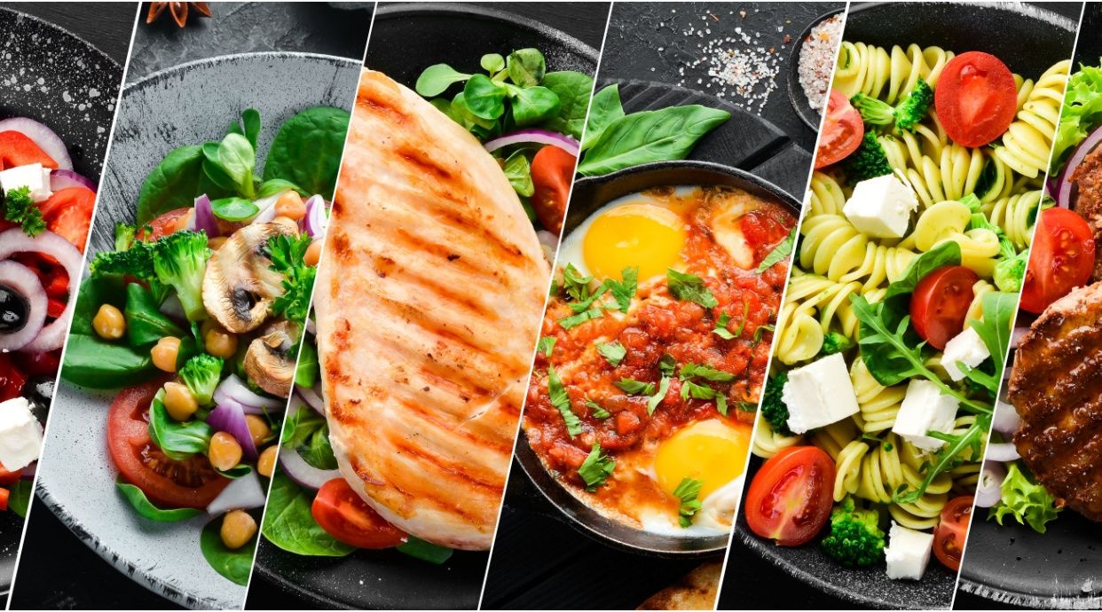 3 ouă, telemea, bacon, ciuperci, roșii, ceapă, ardei gras, măsline negre, castraveți - 410g