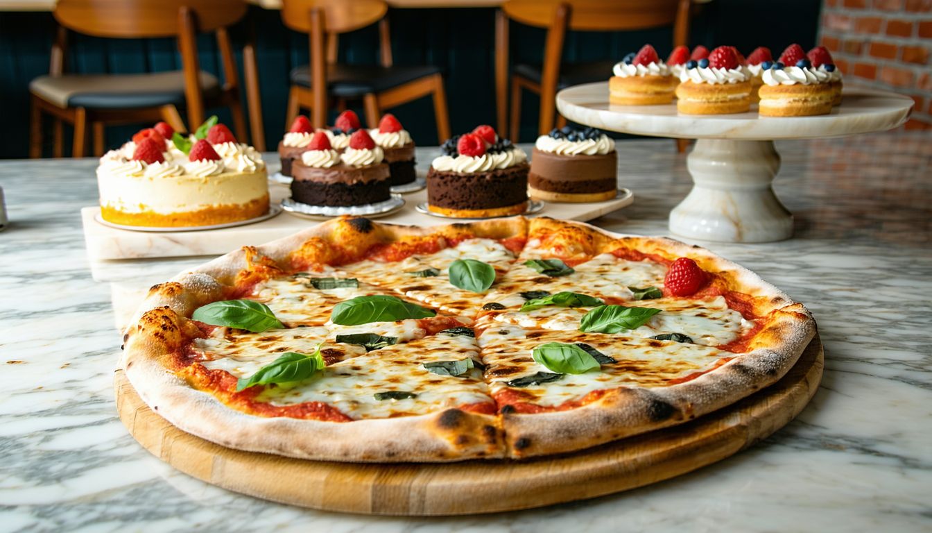 Pizza cu salam, mozzarela, sos , șuncă, bacon și cârnăciori și un ecler pentru energie întreaga zi