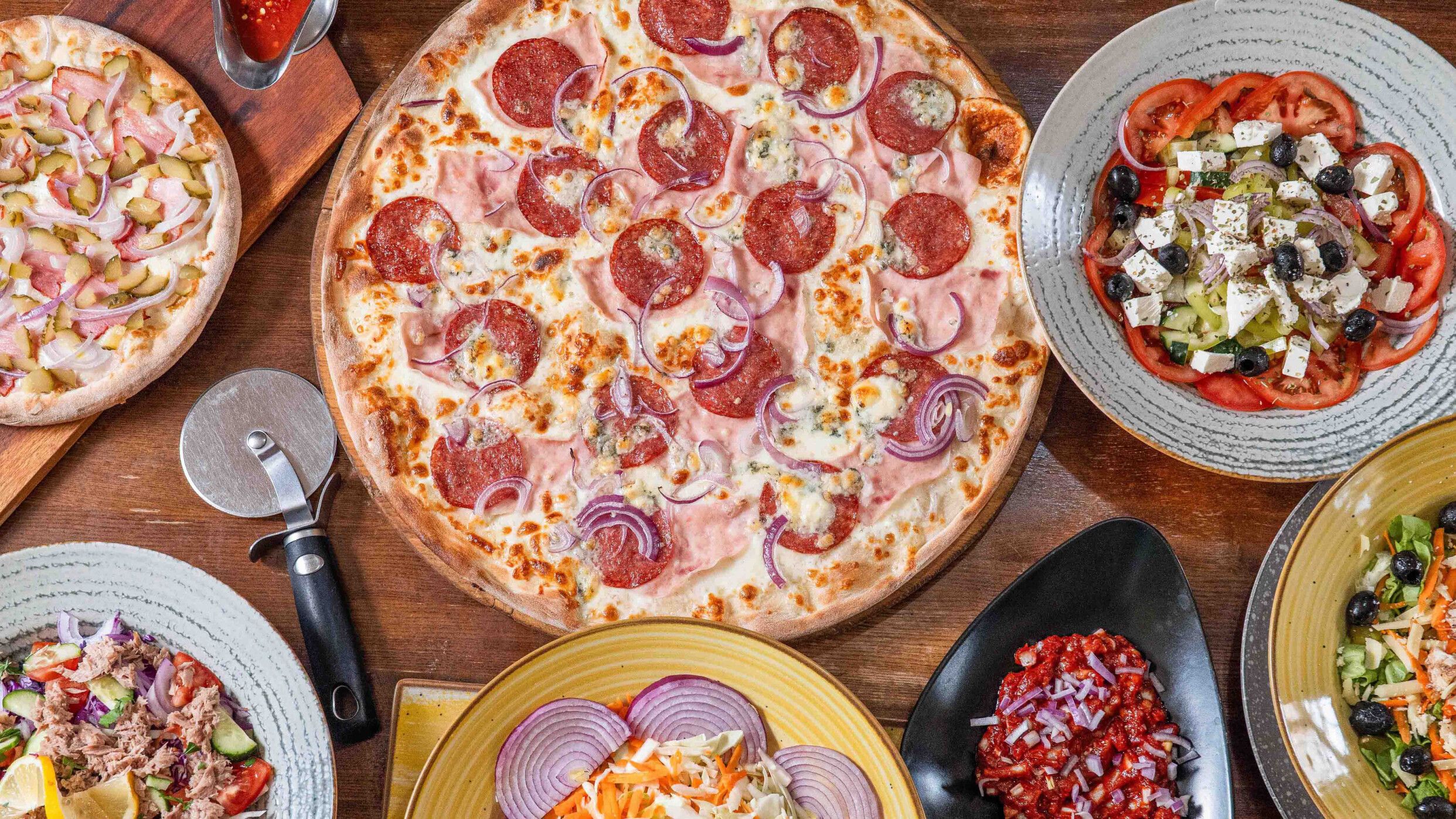 Pizza Callabresse Con Insallata Di Bruschetta Ø30cm