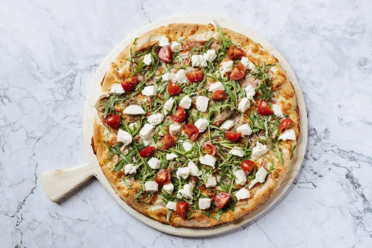 Aluat pizza, sos de rosii, mozzarella, muschiulet afumat, ceafa afumata, costita afumata, carnati - 800g