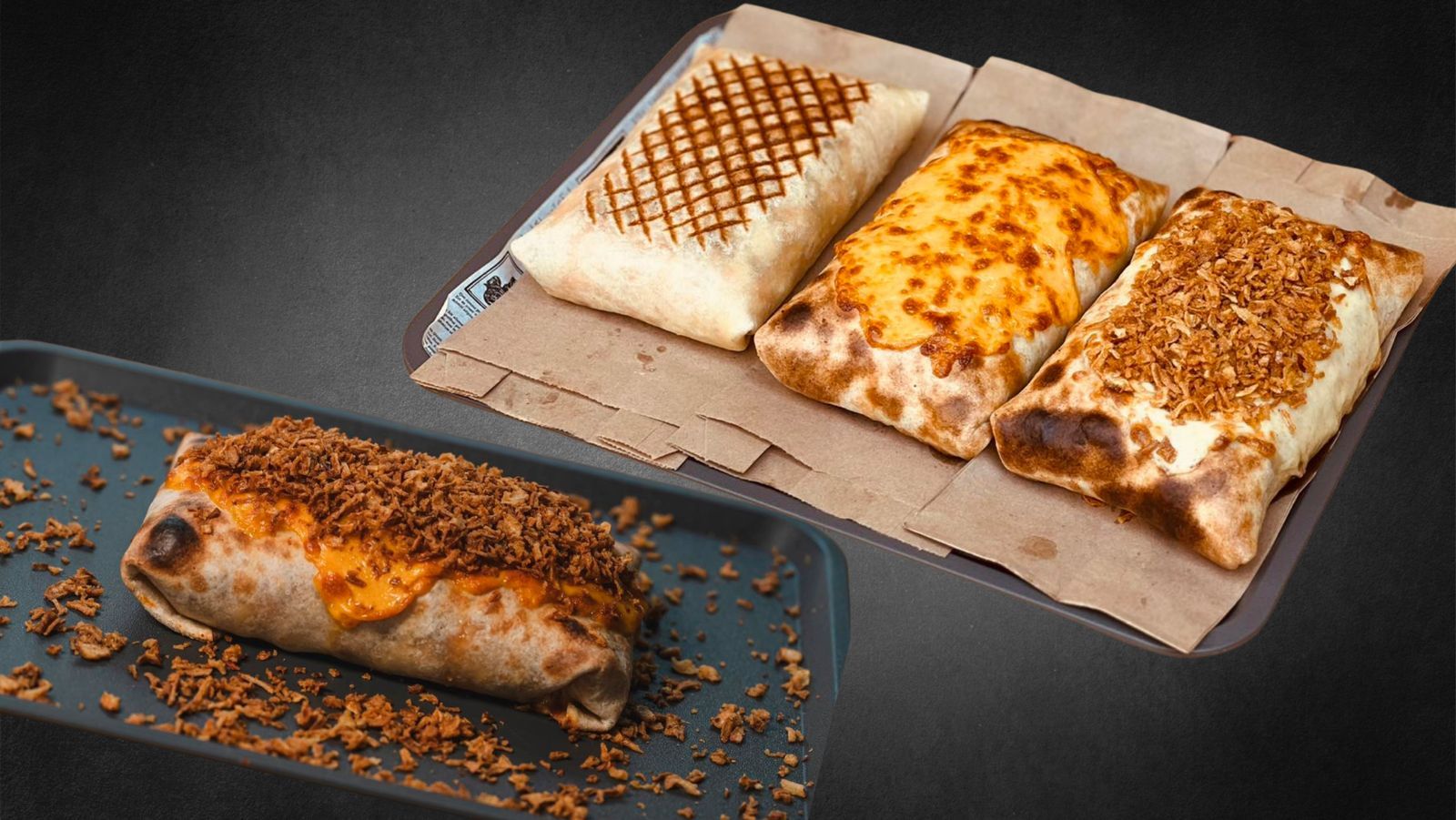 (Tacos Mare) Sos la alegere, Carne, Cartofi prăjiți și Sosul special de brânză. Toate împachetate într-o lipie. Gătite la toast sau gratinate la cuptor cu brânză - 650g