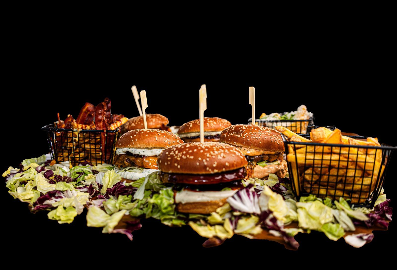 Carne de vita black angus x3, cheddar maturat, mix de salata, sos bbq wiskey, bacon la grata 700g