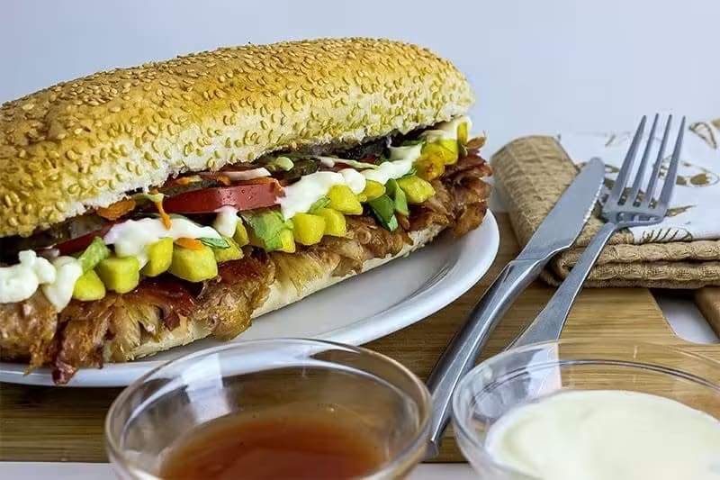 chifla,carne de VITA,cartofi,CHEDDAR,CREMA DE BRANZA,Sos special cald,sos dulce acrisor,castraveti murati,rosii,iceberg