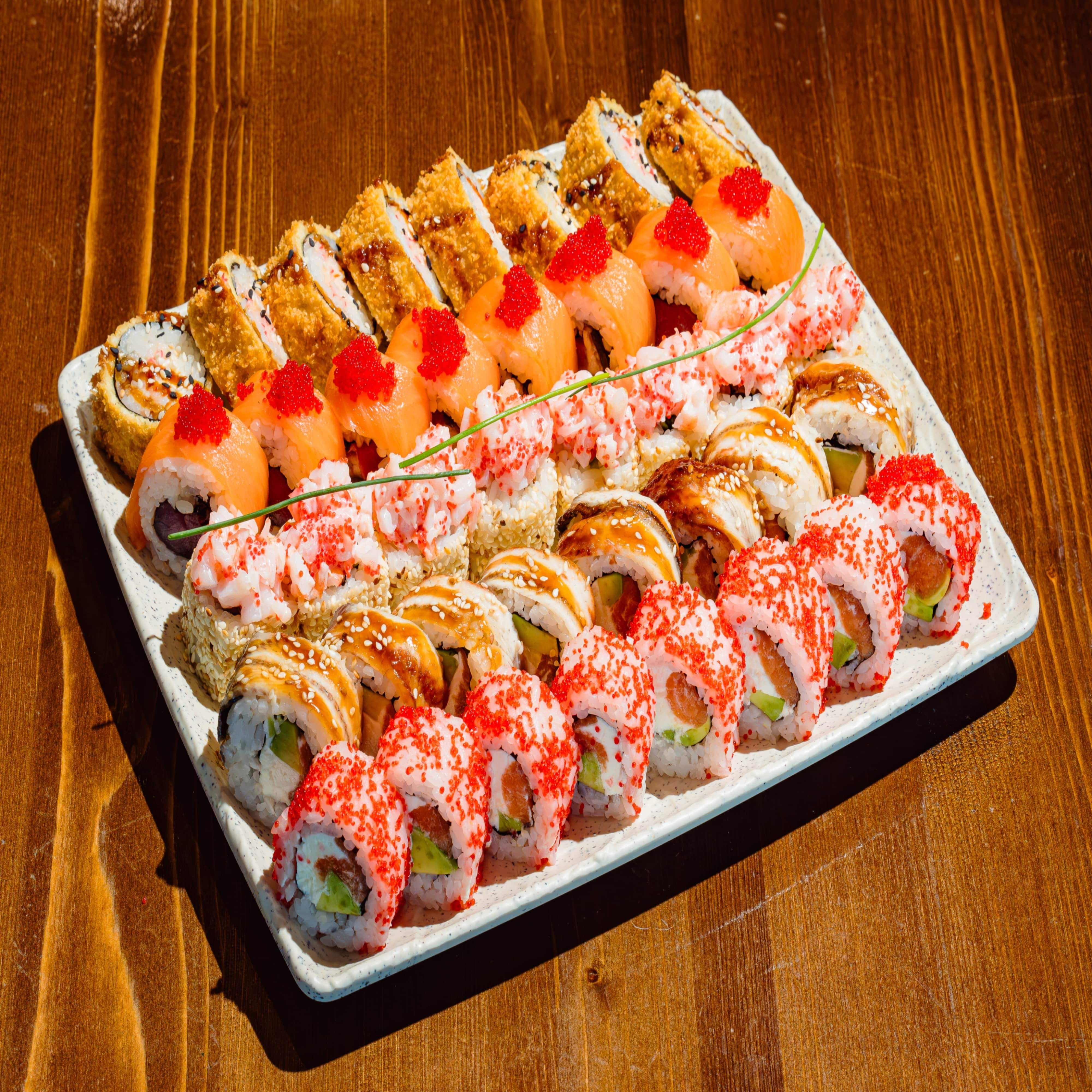 Dragon roșu, tempura creveti, vulcan somon, dragon verde, california somon - 1.5kg