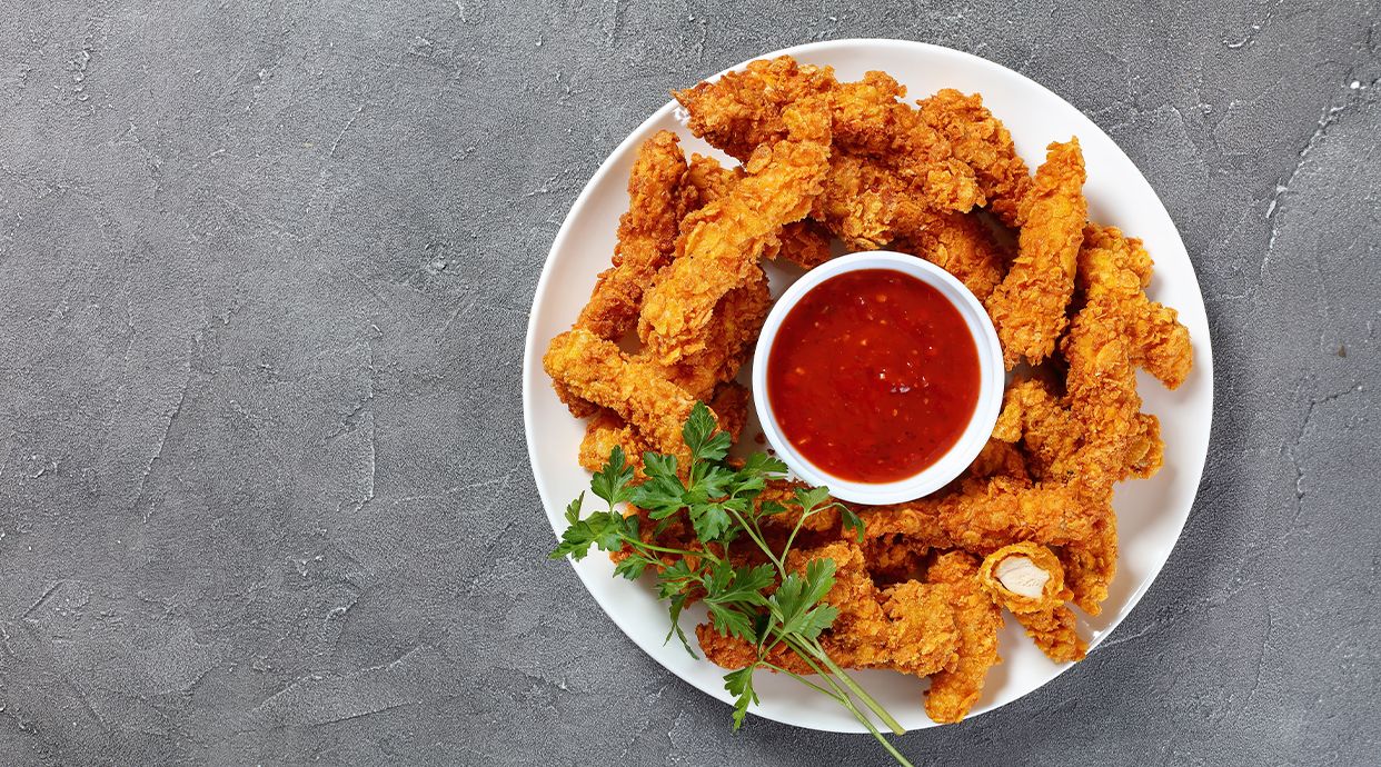 File de pui de calitate + cartofi prăjiți + sos la alegere (sos usturoi, ketchup, maioneza, mustar, BBQ) - 460g