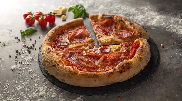 Sos de rosii, mozzarella, salam Napoli, pancetta, ceapa rosie, ciuperci, ardei copt - 1,46kg
