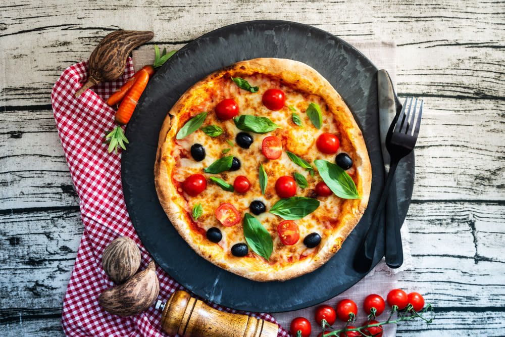 Sos rosii, mozzarella, şunca praga, măsline, ardei gras, ou - 500g