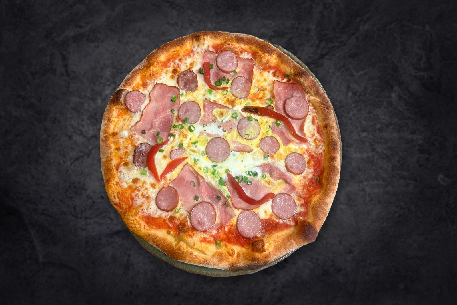 Blat , Sos de Rosii , Mozzarela , Carne de la Garnița , Ceapa , Ardei Copt ,Oregano) 630g.