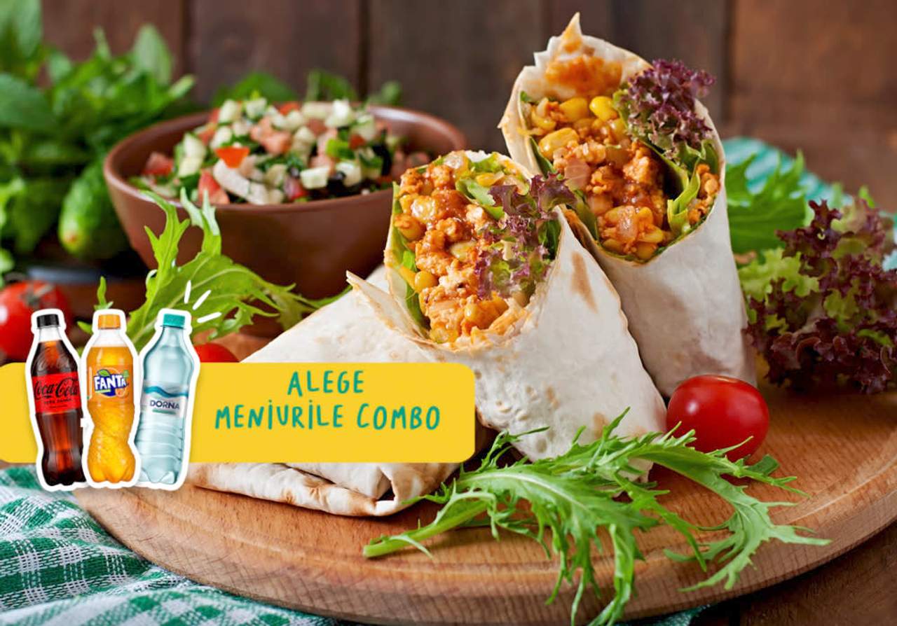 Lipie de casa, crispy de pui, cartofi pai, sos rose, sos usturoi, rosii, mozzarella ,salata , ceapa crocanta