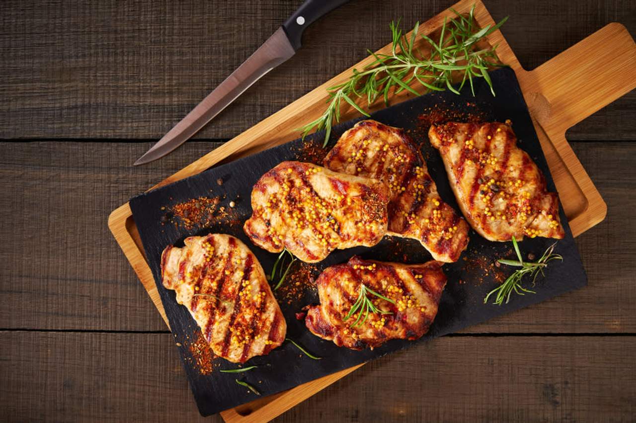 Cotlet de poprc, cartofi țărănești, salată Coleslaw, sos Onix, chiflă