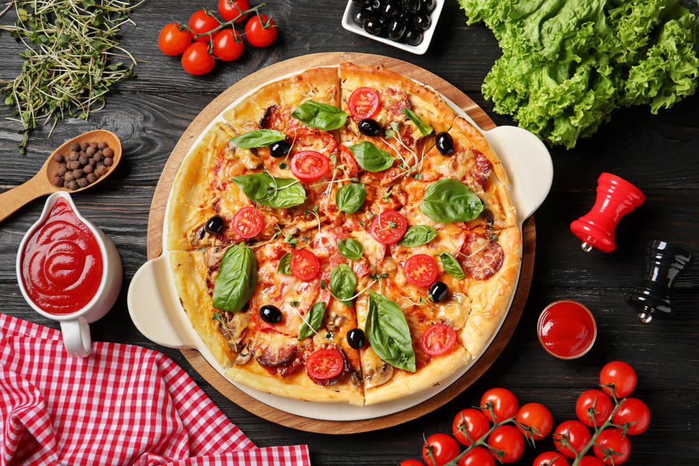 Sos roșii, mozzarella, șuncă, bacon, ceapă, măsline - 690 g