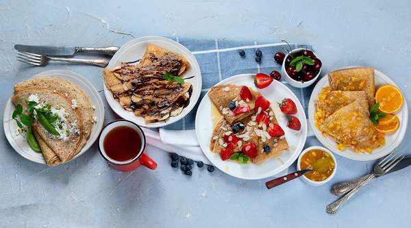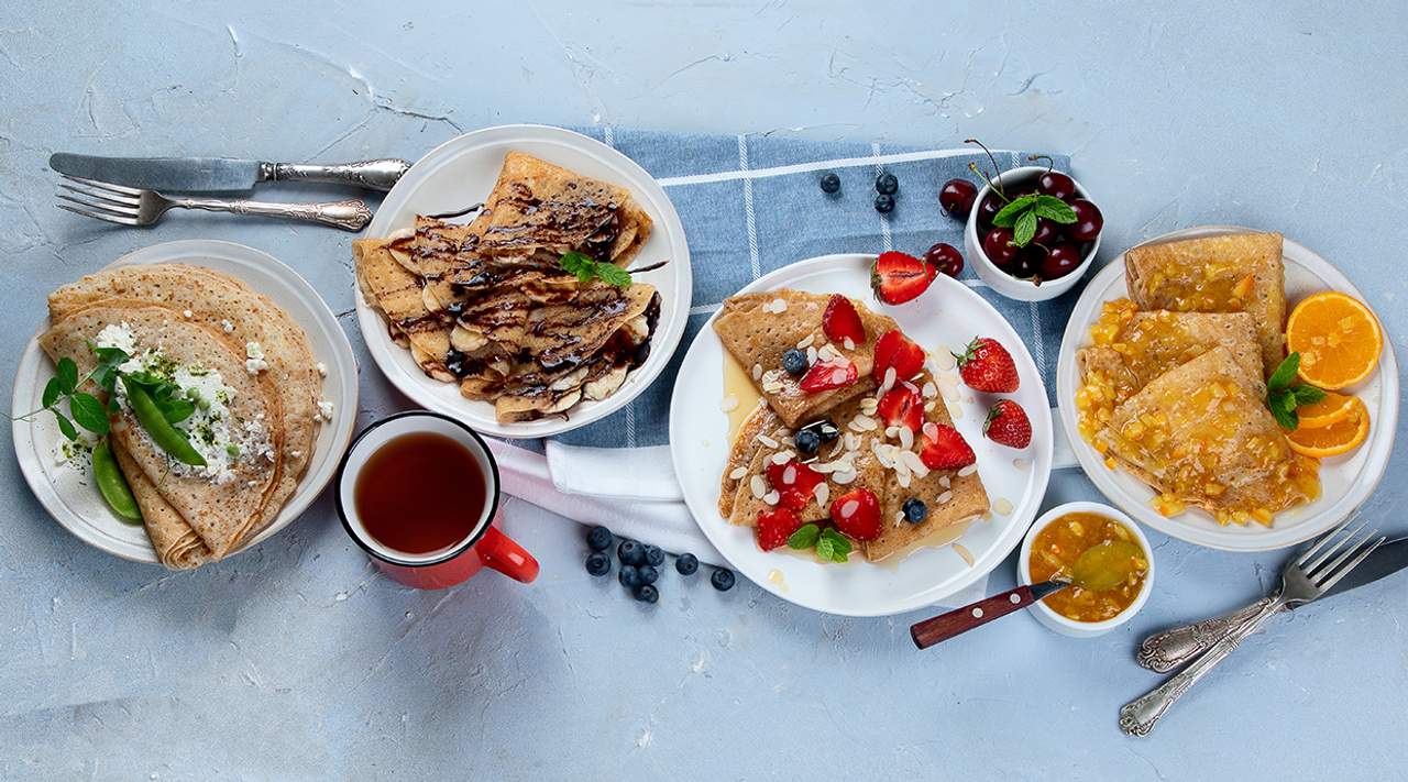 Descriere: foaie clatita (oua, lapte, faina – diametru 40 cm ) – 170 g, dulceata: visine, afine, caise, capsuni, zmeura - 80 g Gramaj: 250 Kcal per 100g: 271 Declaratie nutritionala per 100g: Valoare Energetică: 271kcal, grăsimi 6g, din care acizi grași saturați 2g, glucide 49g din care zaharuri 30g, proteine 4g, sare 0,5g. Alergeni: Oua, Lapte, Gluten