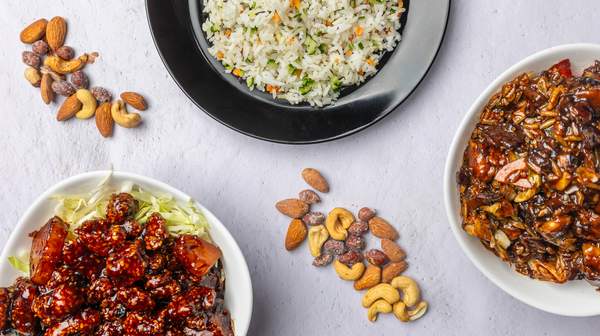 Svinjetina, sezonsko povrće na tračice, crne pečurke, slatko kiseli sechuan