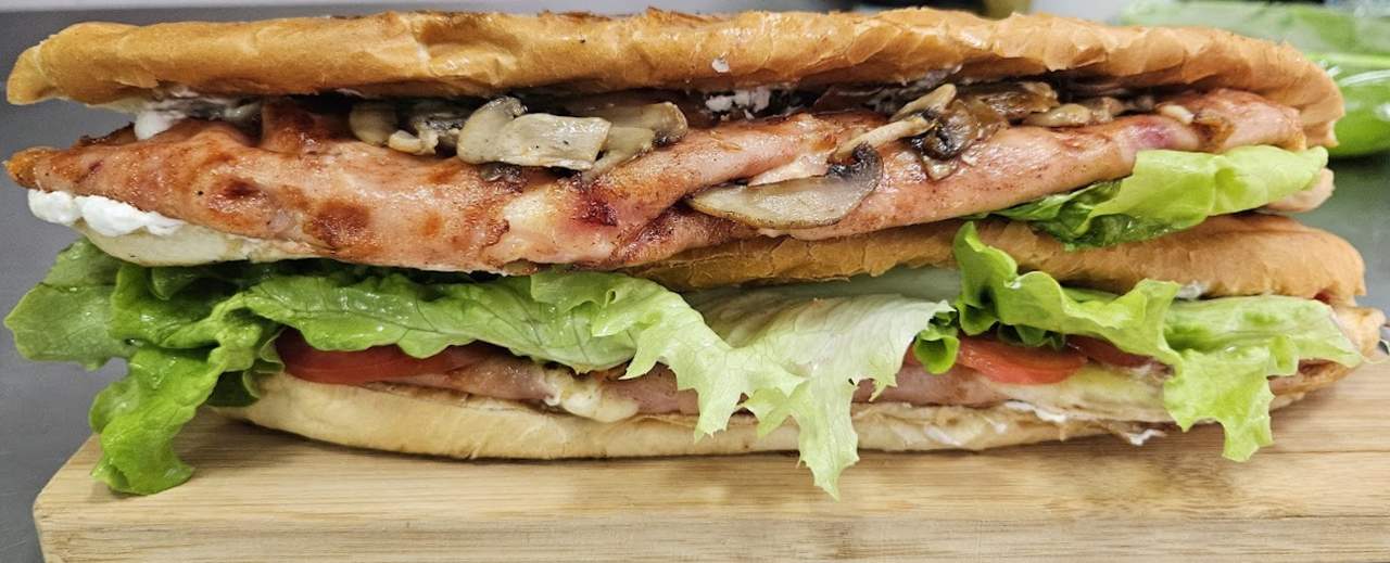 Velika kifla, pavlaka, majonez, sir, šunkarica, paradajz, zelena salata